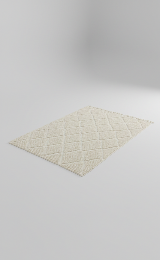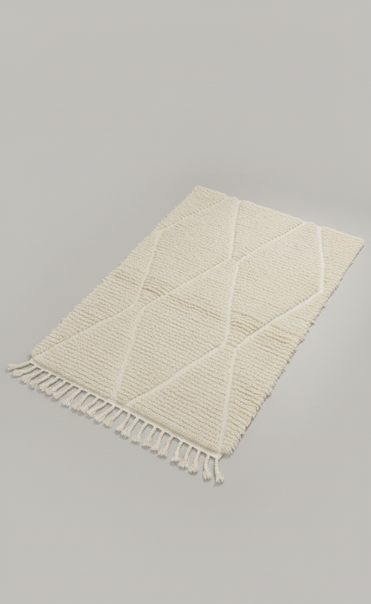 Aura – Tapis Marocain Losanges Ecru Texturé (1m x 1.5m)
