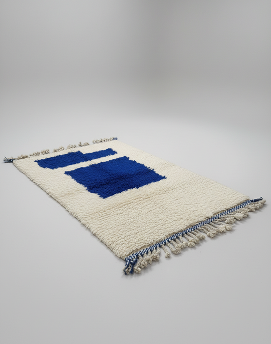 Chaounia – Tapis Artisanal Blanc à Touche Bleu Royal (1m x 1.5 m)