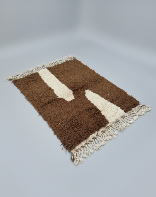Tamr & Haleeb – Tapis Marocain Artisanal Marron & Blanc (1m x 1.5m)