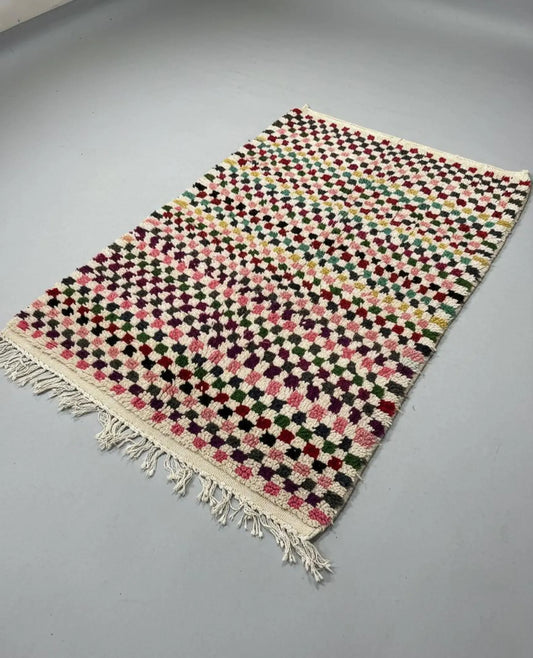 Tapis à Carreaux Multicolores – Fait Main Style Azilal avec Carrés Colorés (1×1,5 m)