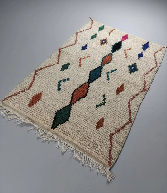 Tapis Marocain Blanc Moucheté en points multicolores (1.1m x 1.45m)
