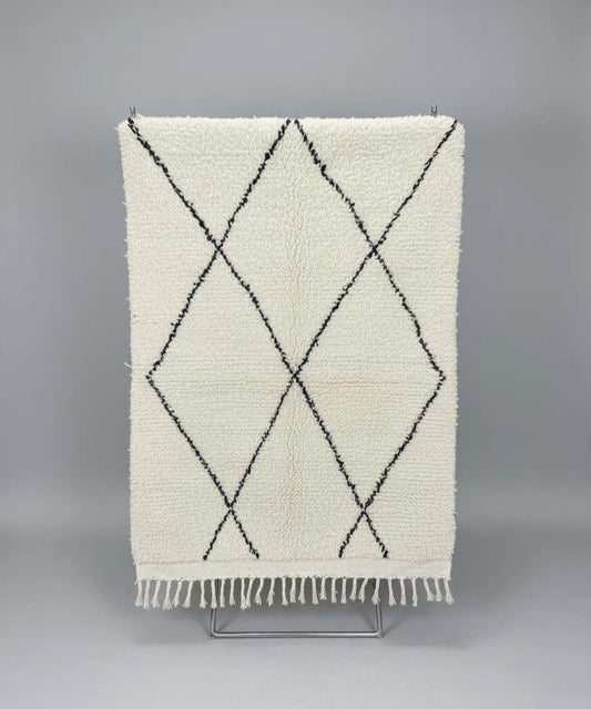 Tapis Berbère Beni Ouarain – Laine Blanche, Fait Main (1.1×1,5 m)