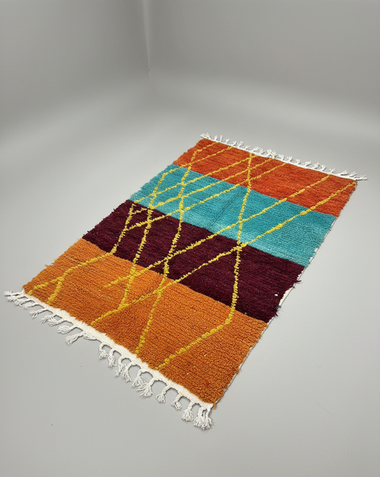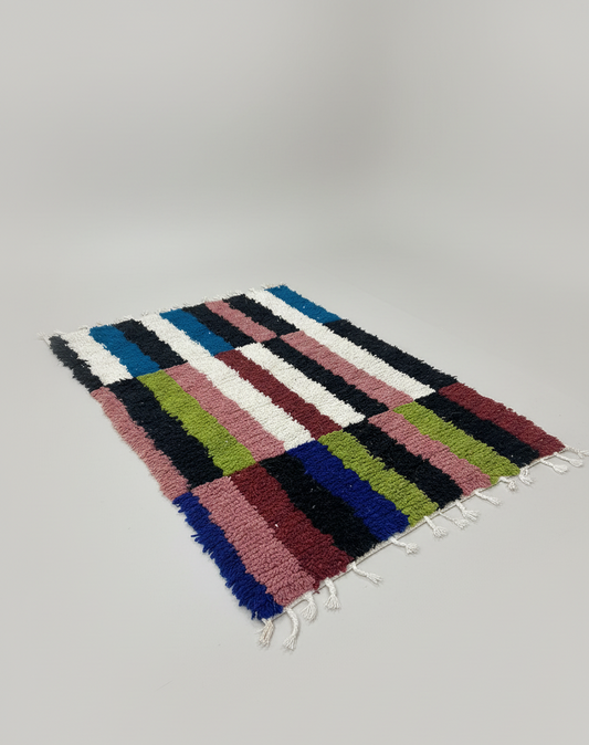Tizgui – Tapis Artisanal composition audacieuse de bandes de couleurs (1m x 1.5m)