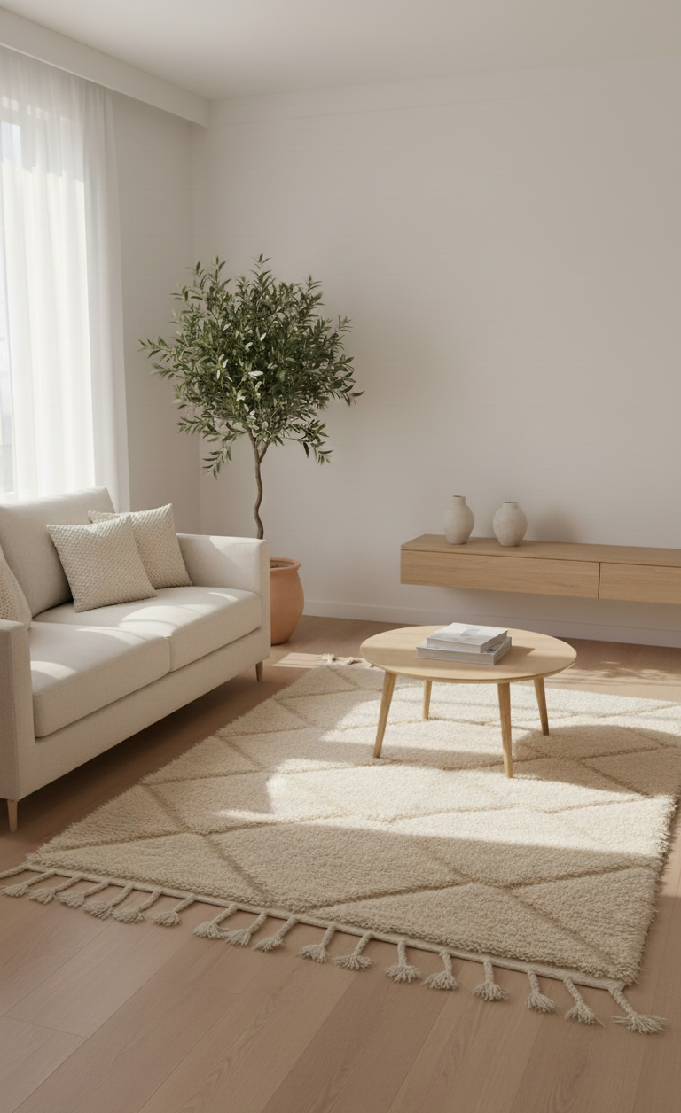 Aura – Tapis Marocain Losanges Ecru Texturé (1m x 1.5m)