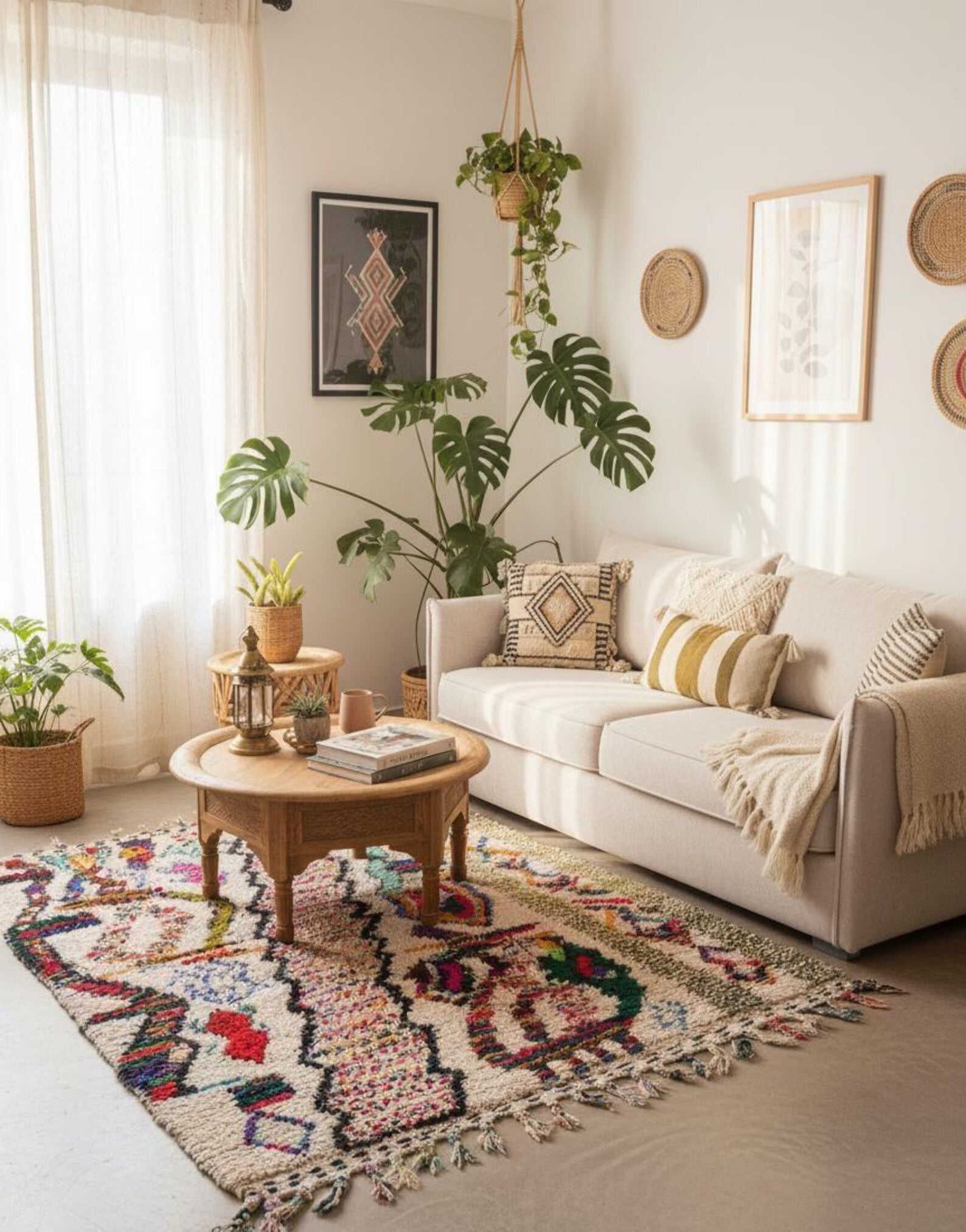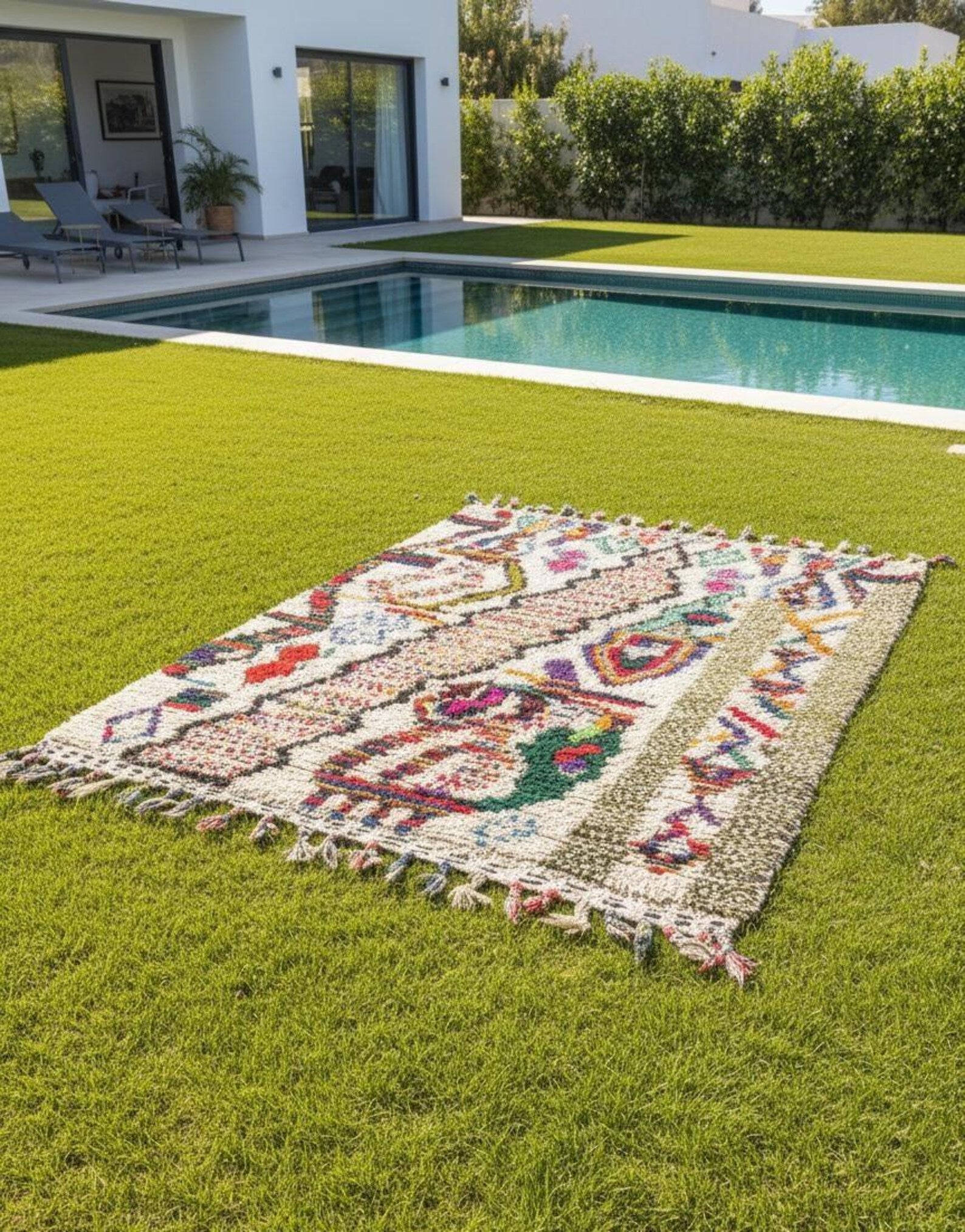 Design vibrant : Chaque tapis raconte sa propre histoire à travers des formes géométriques colorées et joyeuses, inspirées des symboles amazighs et de la nature.