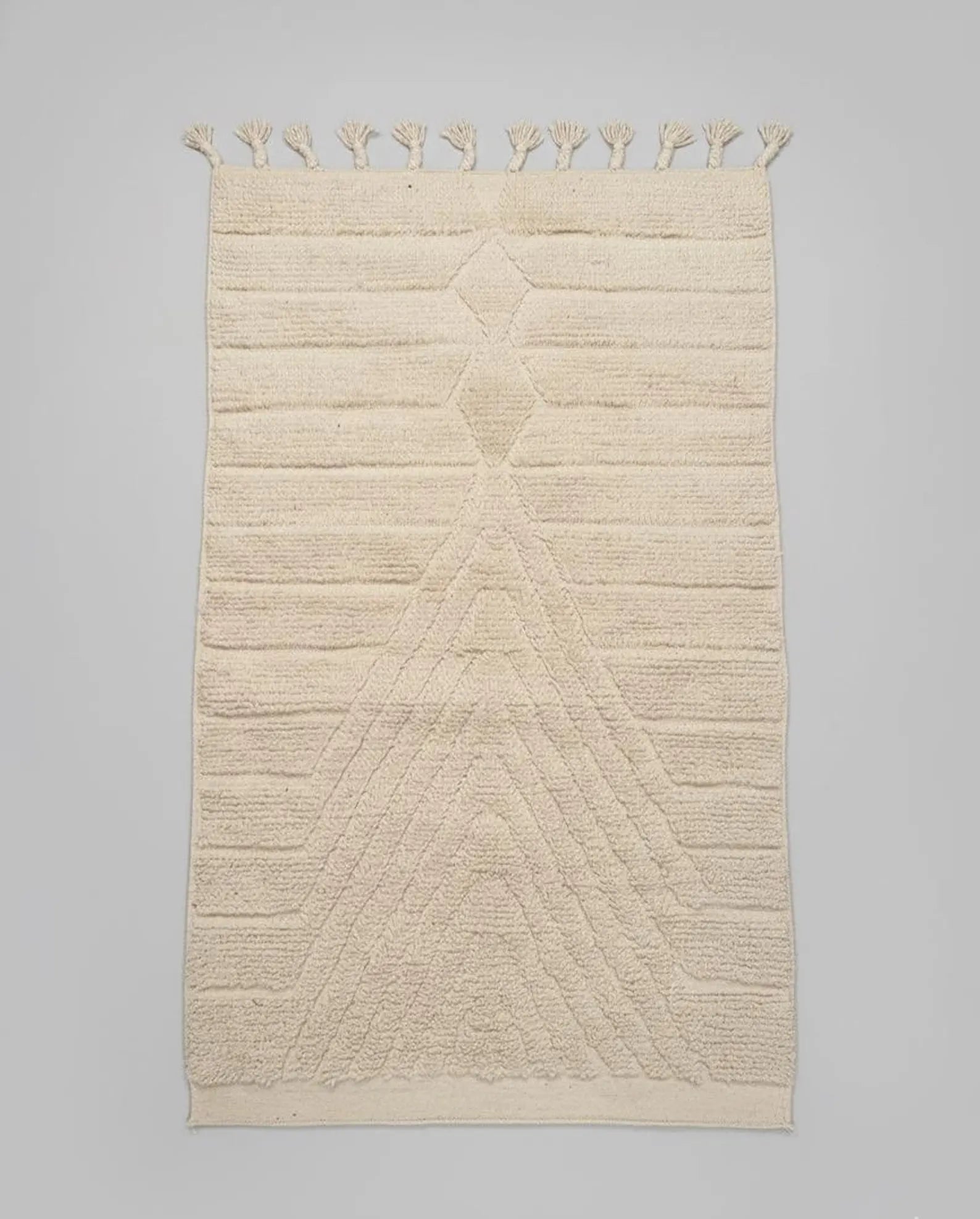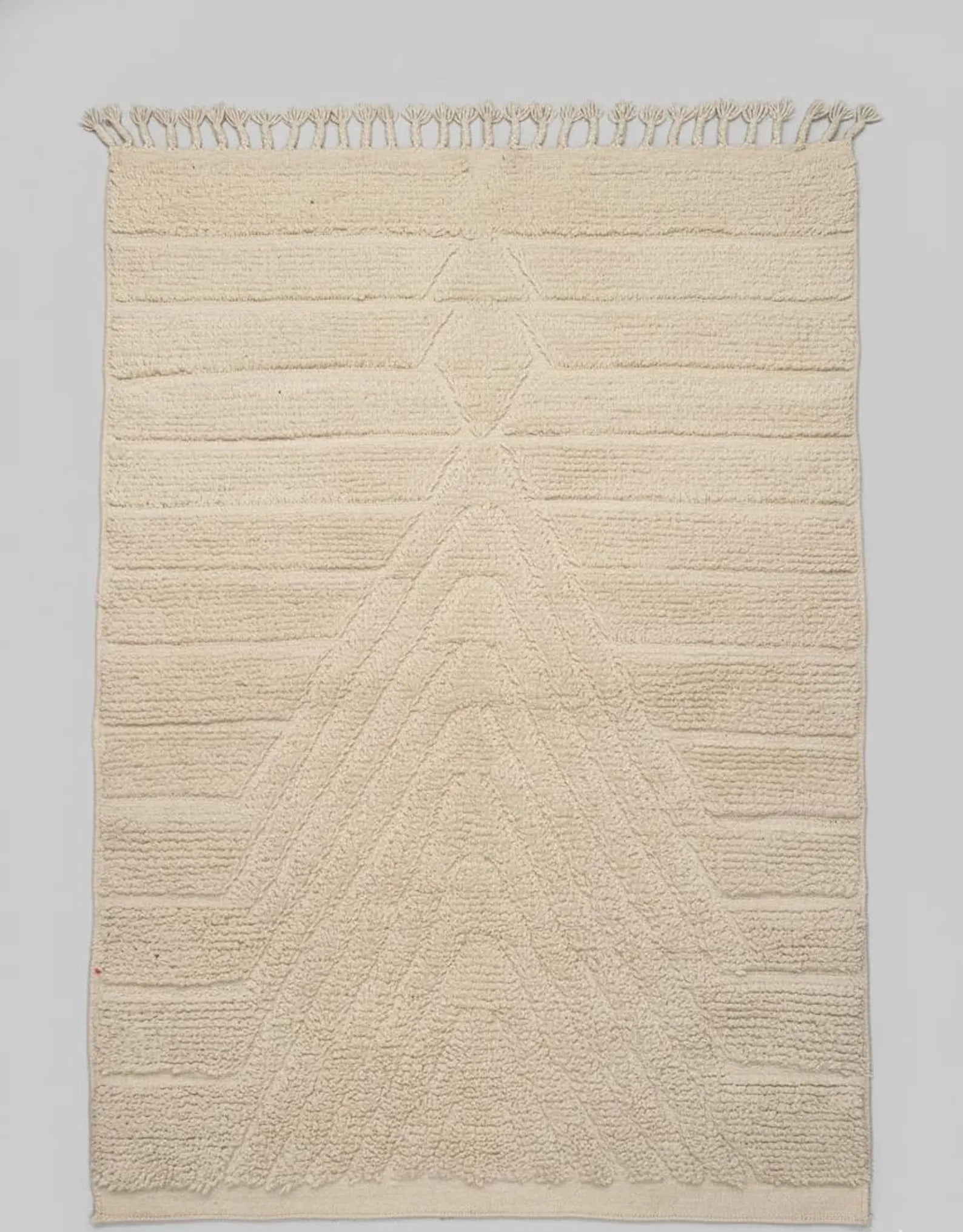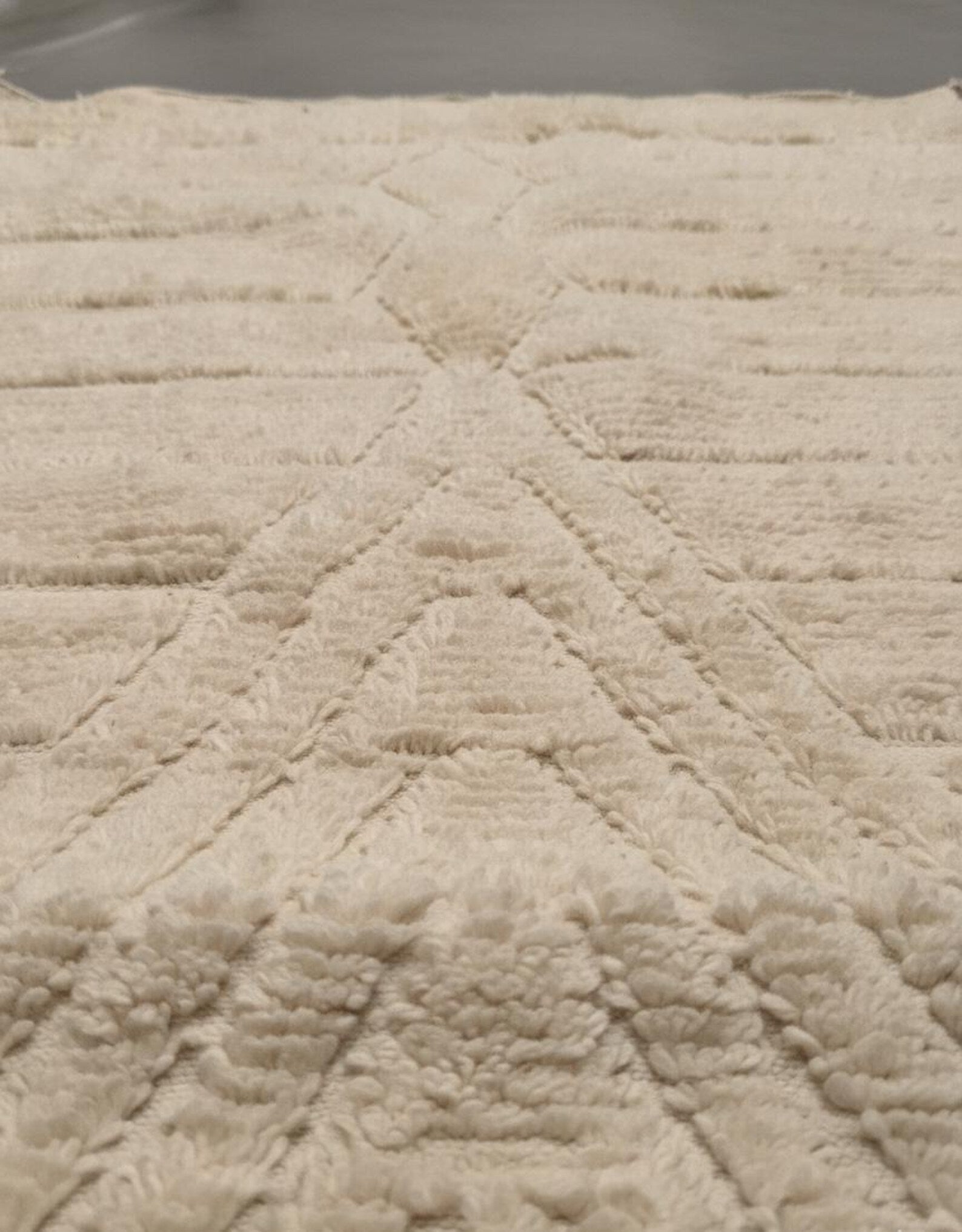 Ce magnifique tapis marocain minimaliste est entièrement confectionné à la main à partir de laine naturelle 100 %, alliant de doux tons entre le blanc cassé et le beige pour offrir une ambiance à la fois épurée et apaisante.